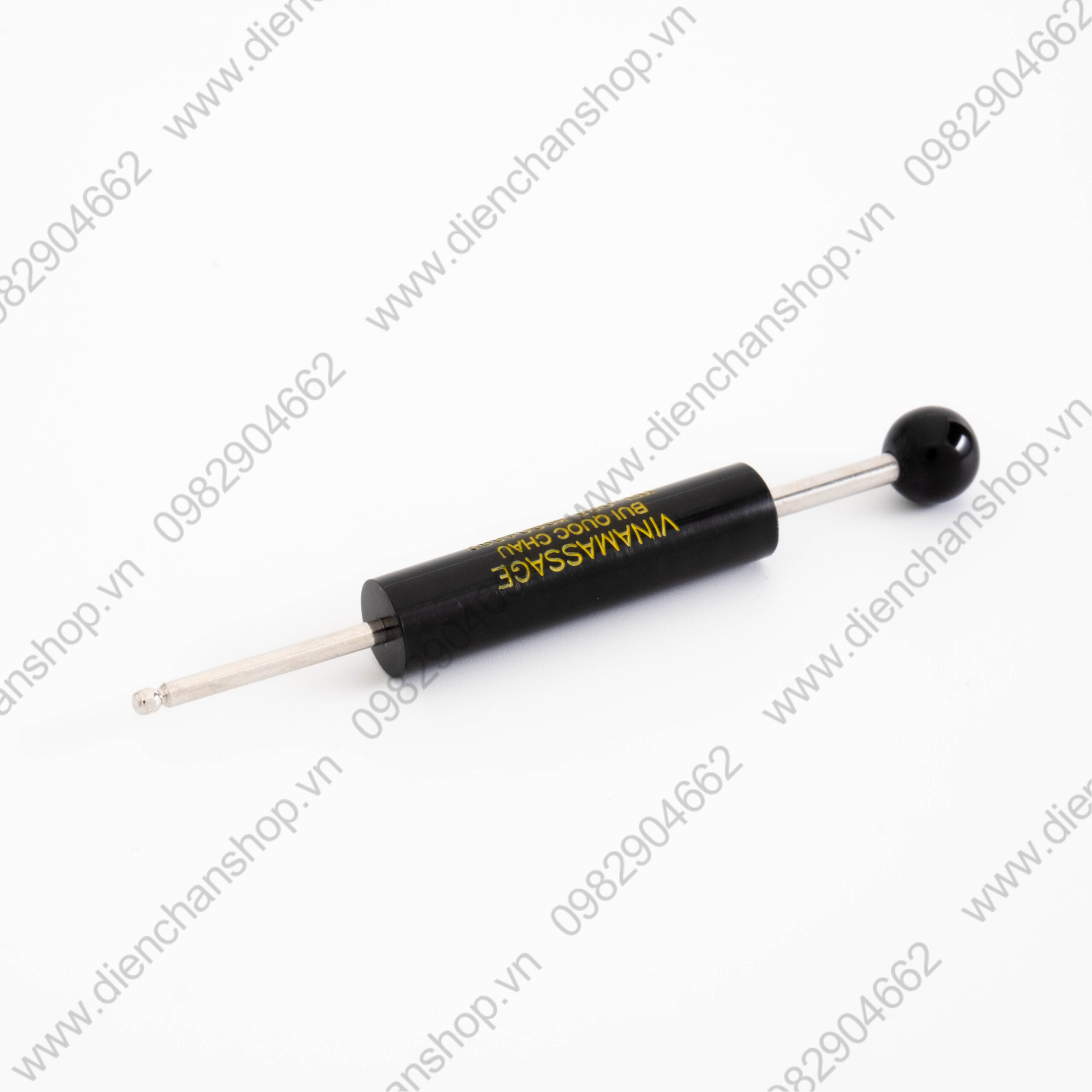 Công Dụng: Dùng để dò tìm day ấn các huyệt hoạc gạch mặt theo đồ hình phản chiếu và đồng ứng của Diện Chẩn, đầu tròn to dùng day trực tiếp trên da hoạc day phớt, chà (GÔM) các vùng phản chiếu trên mặt hoạc toàn thân, người dùng có thể day chà ( GÔM) vào các vùng đau nhức như cách đánh gió,